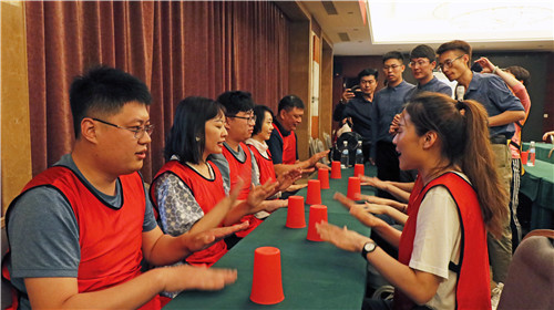 23日輕松而有趣,任務是用杯子“舞”動團隊。